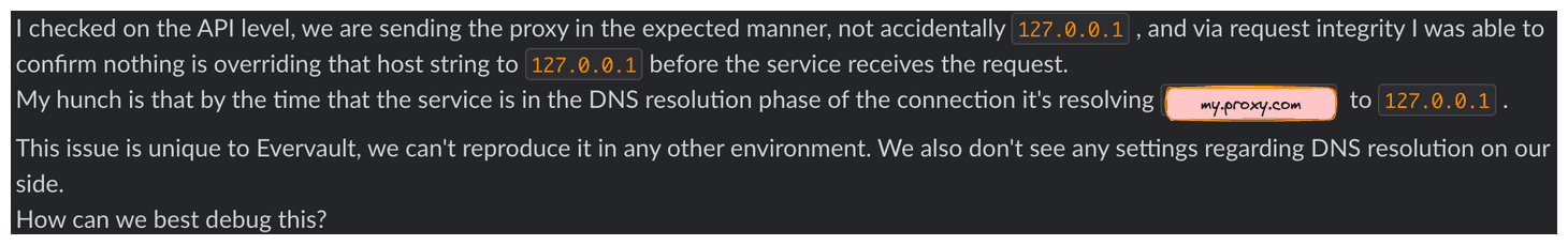 To account for this, we modified the egress proxy to check the IPs against the value in SO_ORIGINAL_DST. However, we didn’t want users to need to specify IPs for domains they don’t control that may have dynamic IPs. This would mean egress would fail if a third-party provider updated their IPs, and the only fix would be a new deployment.