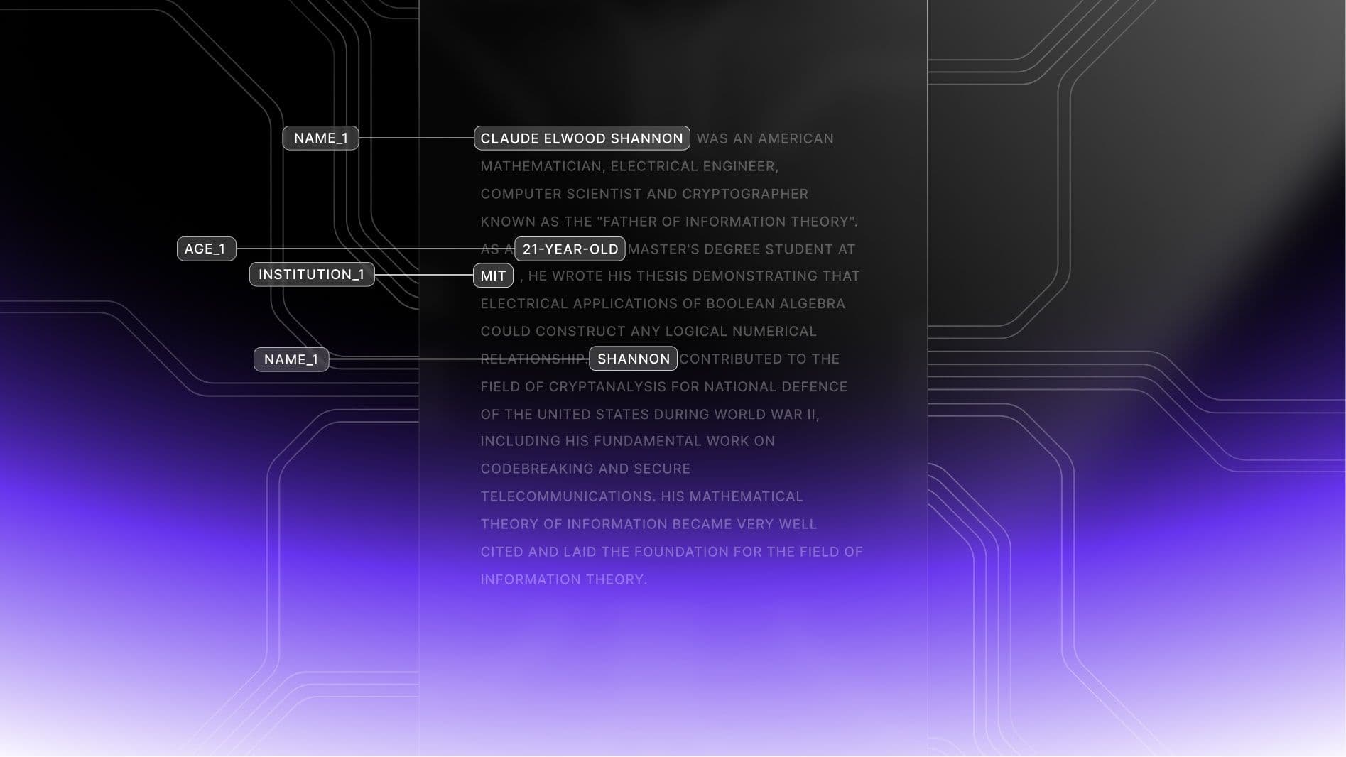 When configured between your infrastructure and a third party, Relay Redaction will automatically scan for 35+ fields of PII (like name, address, social security number) and then replace them with synthetic data before sharing.