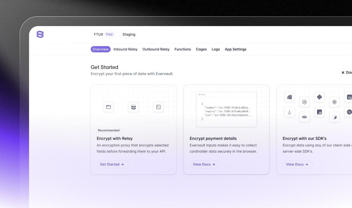 Evervault is technology-agnostic and configurable for a range of encryption and data security use cases. Although this is a positive, but we don’t want the new user to feel overwhelmed.