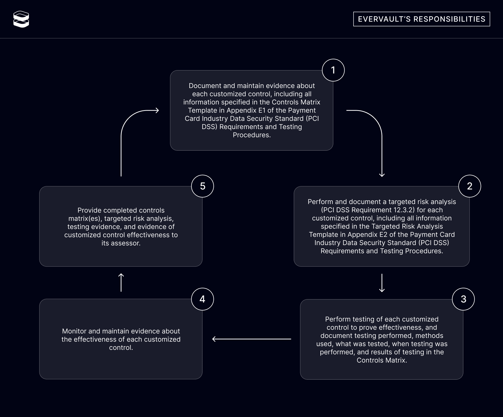 As the Qualified Security Assessor for the Evervault PCI DSS v4.0 assessment, our responsibilities associated with the use of the customized approach elected by Evervault included the following: