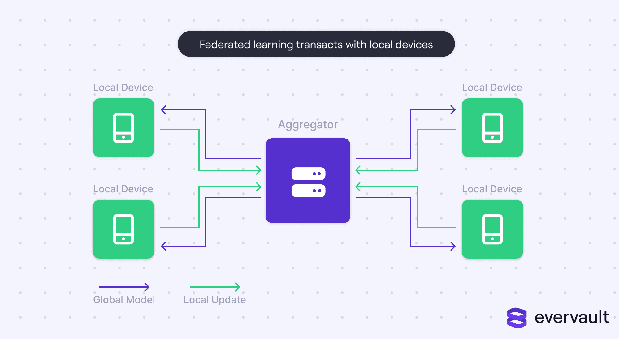 Federated learning is a machine learning strategy where training is delegated to local devices using local data. A central server corresponds with local devices to aggregate the gradients into a global model without accessing the raw data. Federated learning is a PET, a privacy-enhancing technology, as it hypothetically safeguards user data while still harnessing its training potential.