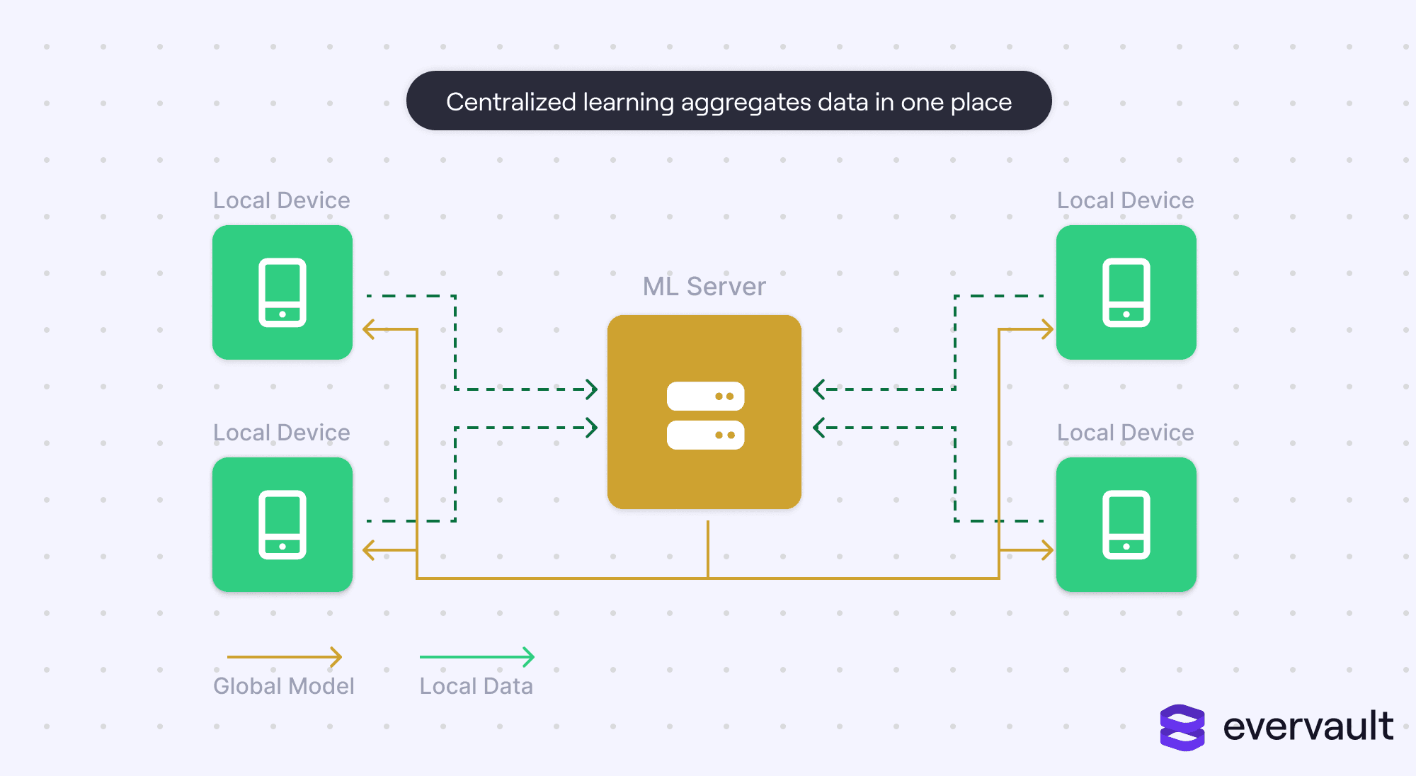 Federated learning is a privacy-based improvement upon centralized learning. In centralized learning, local devices stream data to a central server, which in turn collects, organizes, and aggregates them for machine learning.