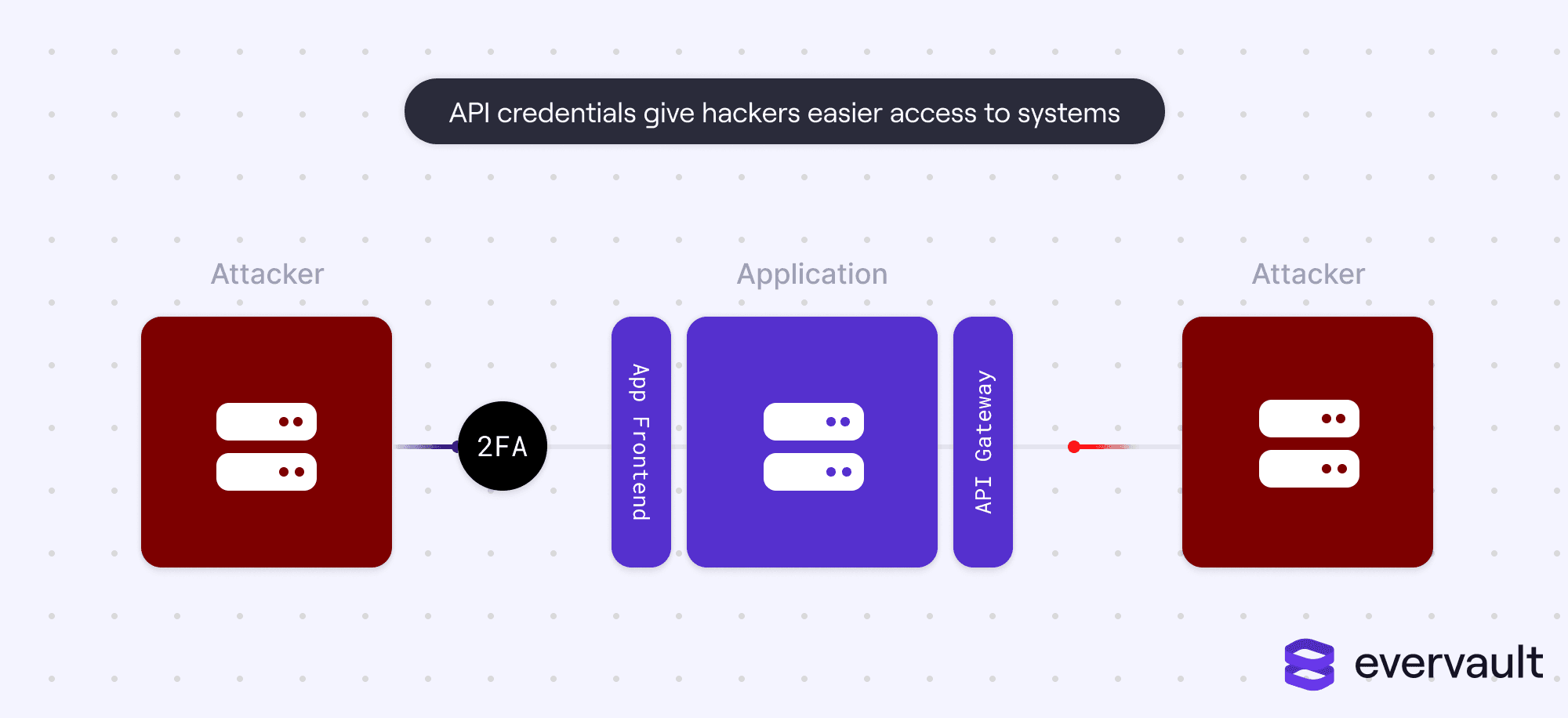 But it isn’t. The hacker turf war has simply shifted. Nowadays, credentials are not limited to basic usernames and passwords; instead, most authorization happens in the background via APIs and API Secret Access Keys. Those access keys are like super-passwords. When compromised, they can spell serious disaster, especially because they don’t have safeguards such as human-in-the-loop verification (e.g., 2FA).