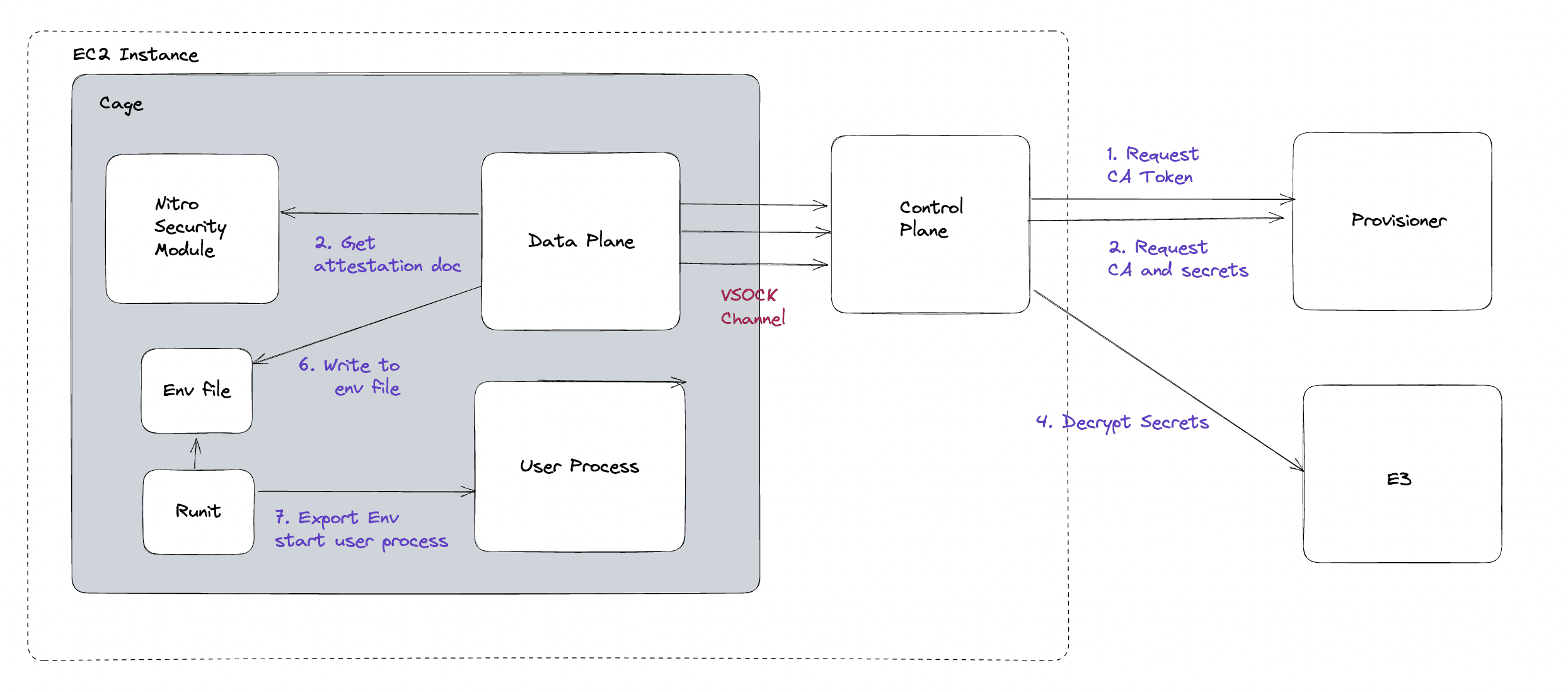 Earlier in the series, we discussed how to build and deploy a Cage to a Nitro Enclave. In this blog post, we’re going to discuss how the Cage environment is initialized on startup. Using enclaves should be simple, so we developed a system to provide TLS certificate provisioning and secrets management out of the box. To ensure that Cages would be completely language agnostic, we also added an on-enclave API to manage encryption, decryption and attestation document retrieval.