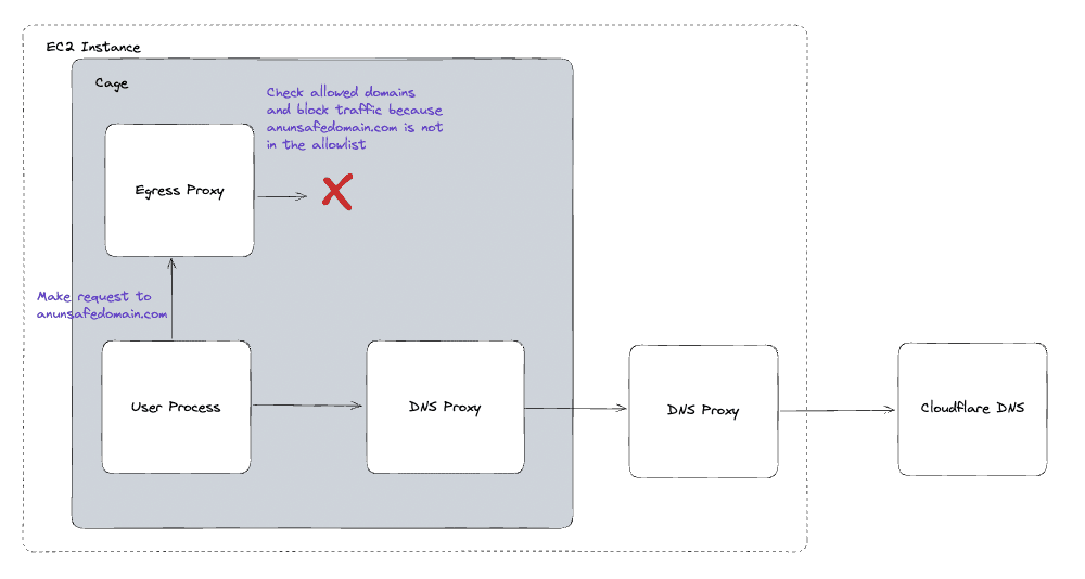 When you build a typical application, you’re generally pretty sure what domains it will access when it is running. You’re confident that because you wrote and reviewed the code, you know where data will be sent from the application. Unfortunately, thanks to typosquatting, it can be surprisingly easy to accidentally pull in a malicious dependency if you’re not careful. You can mitigate this risk by double-checking legitimate package names and using dependency scanning, but we wanted to make sure that we also protected against it in Cages for users who want network egress to be enabled.