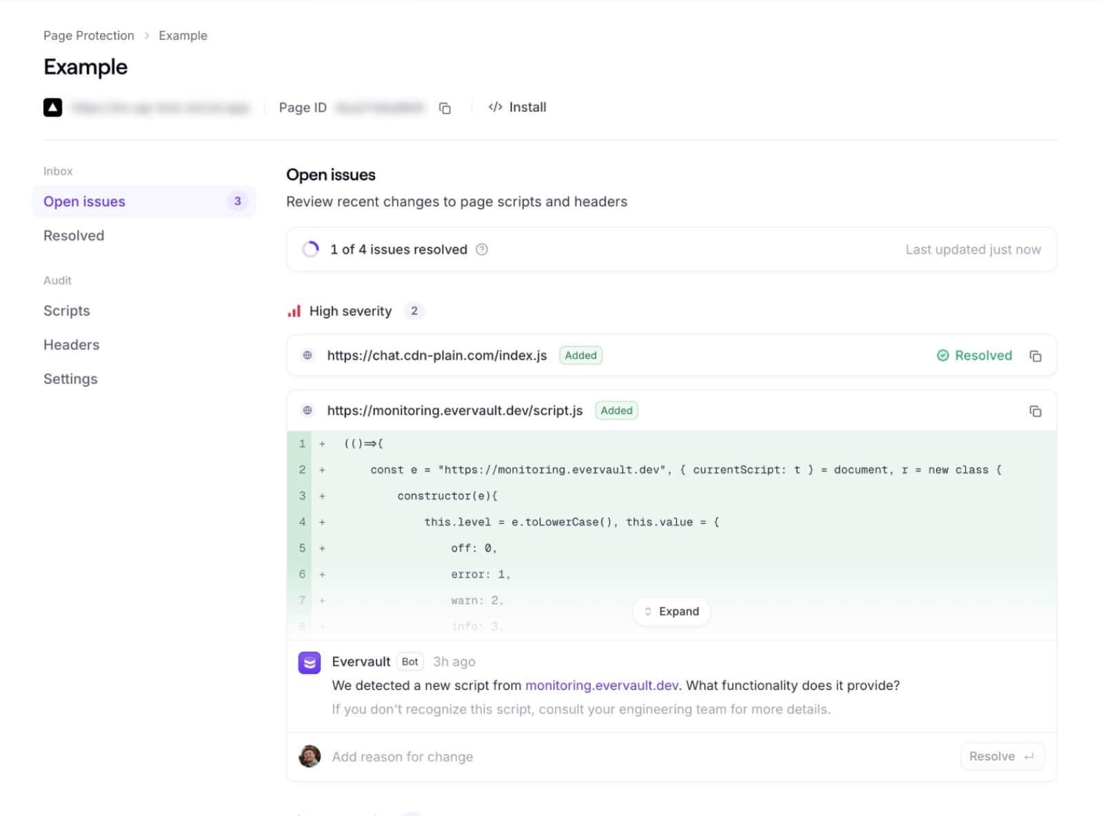 Today, Evervault is launching Page Protection, a browser script management product that helps payment companies and merchants secure their payment pages against script attacks and comply with the latest PCI DSS 4.0 compliance requirements (6.4.3 and 11.6.1).