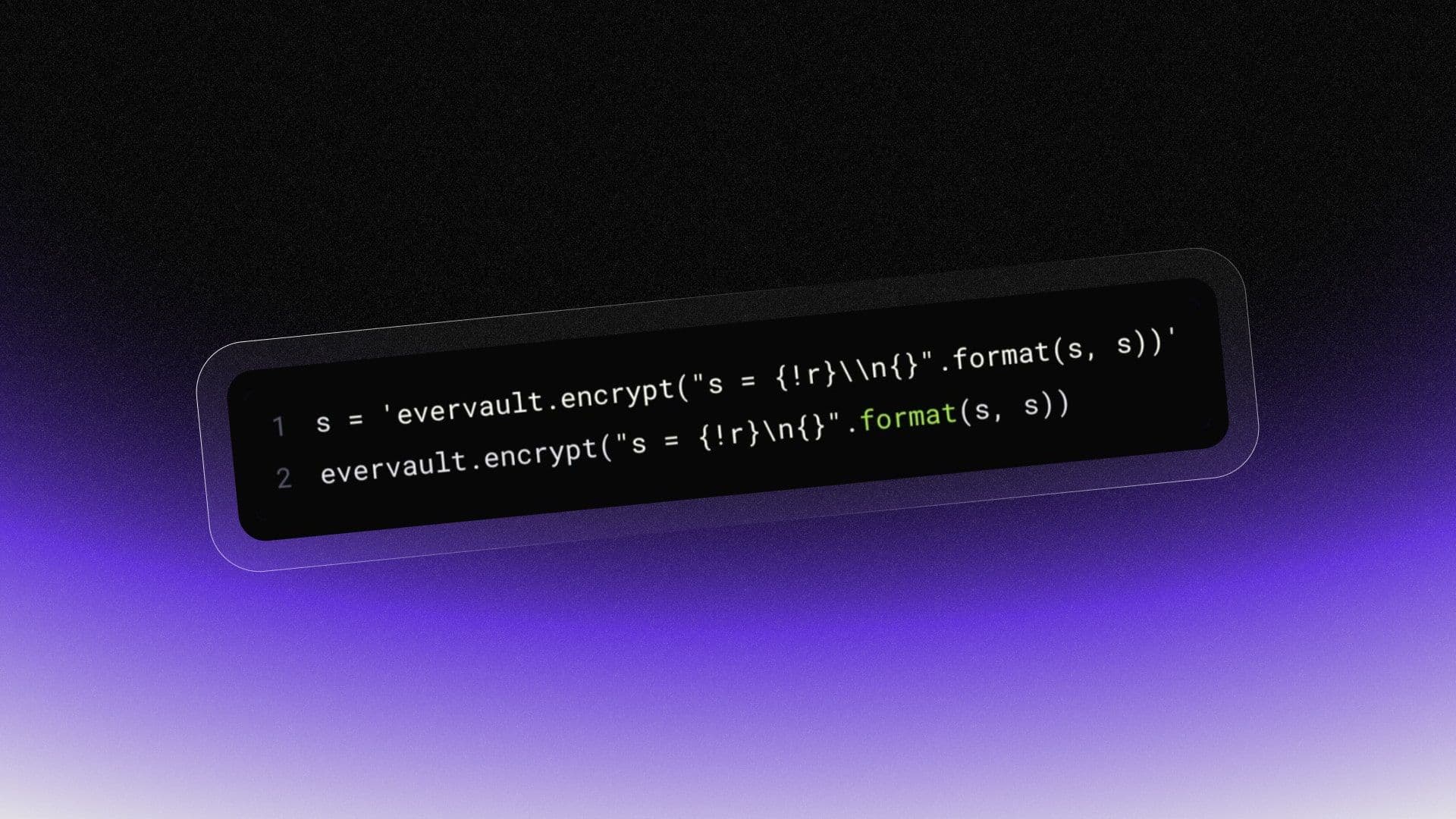 2evervault.encrypt("s = {!r}\n{}".format(s, s))It is the encryption equivalent of a Quine! Built using the Evervault SDK.
