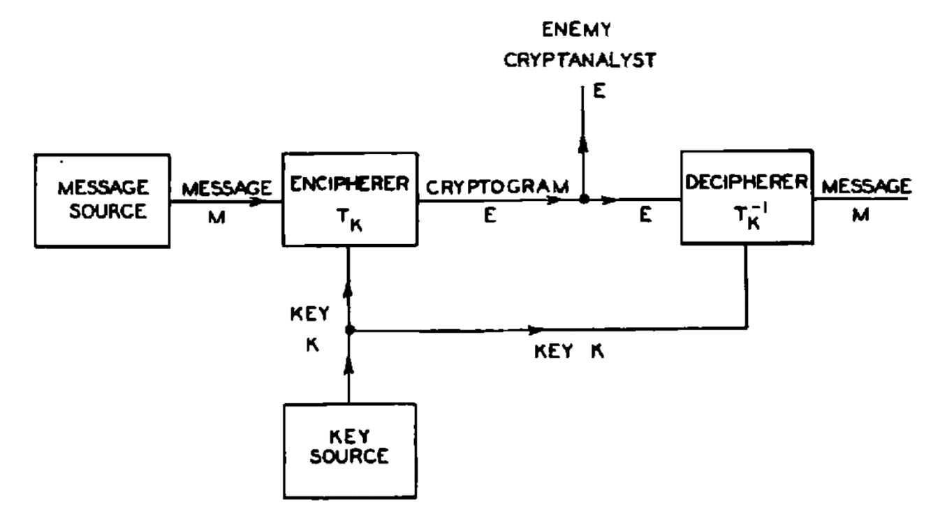 Fig. 2: Schematic diagram of a general secrecy system (Sha49).
