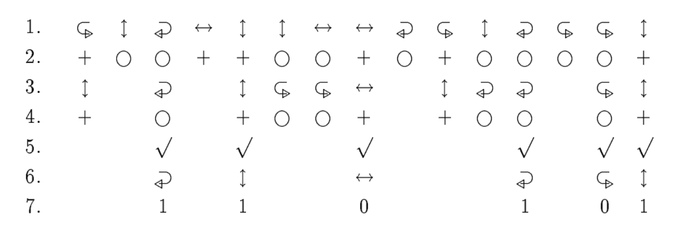- This data is interpreted as a bit sequence according to the coding scheme ↔ = ↪︎ = 0 and ⭥ = ↩︎ = 1.