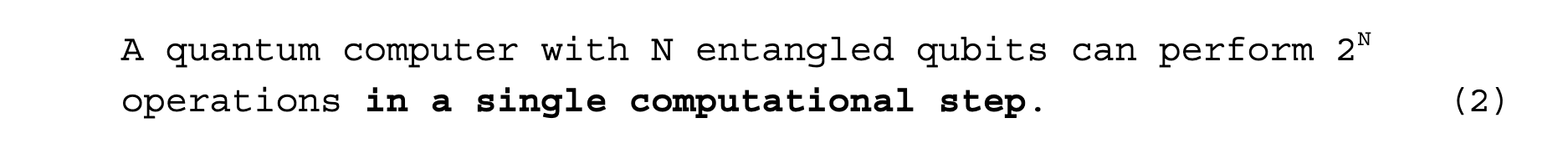 The core takeaway is this: to accomplish the same task as a quantum computer, a classical computer would have to repeat a computation 2N times — or 2N different processors would have to work in parallel.