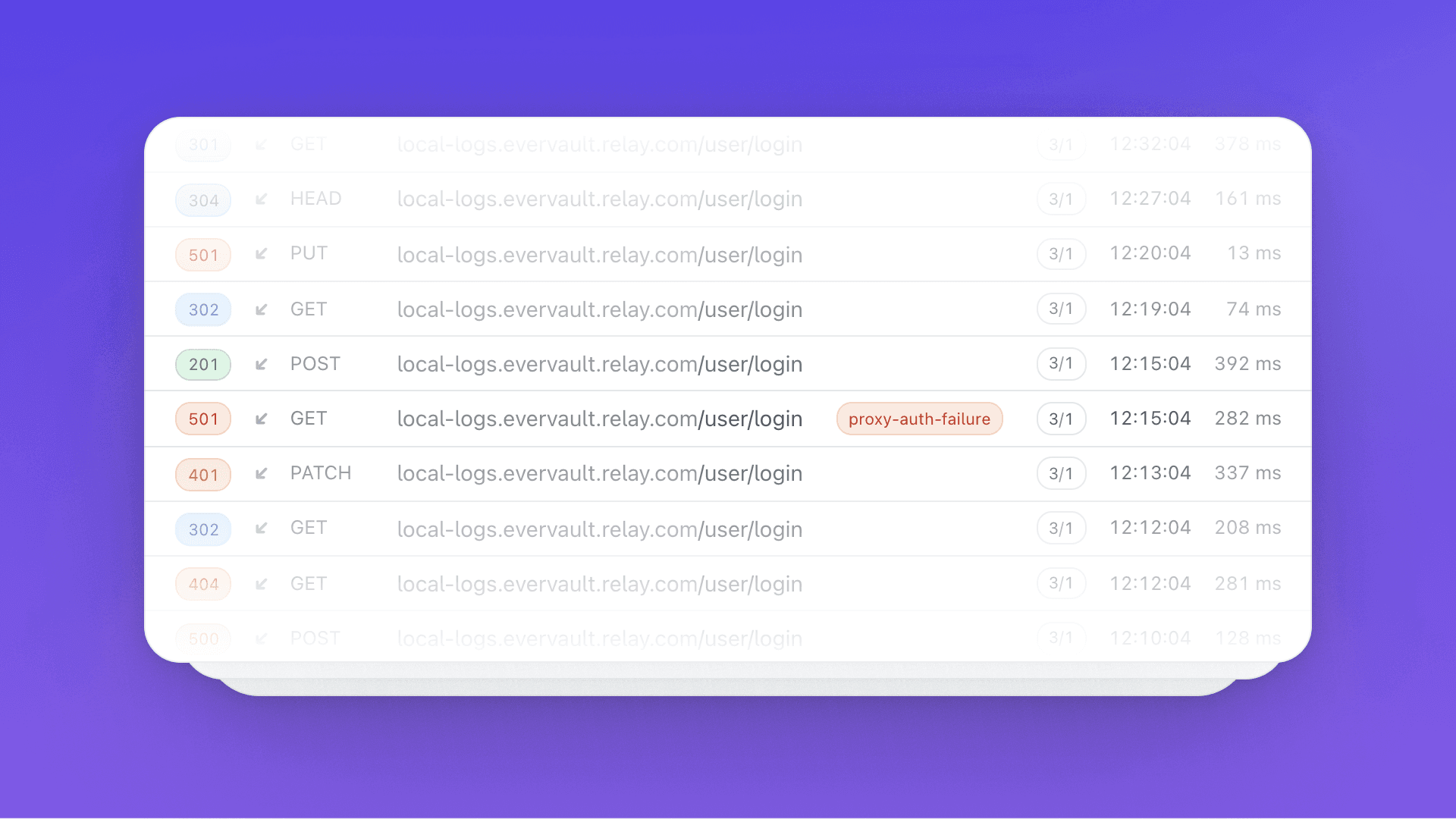 Evervault Relay accepts connections from your users, encrypts sensitive data fields and then connects to your API and transmits the encrypted data over TLS. Occasionally, errors can occur between your user and Relay or between Relay and your API. These errors can often be difficult to debug without verbose request logs.