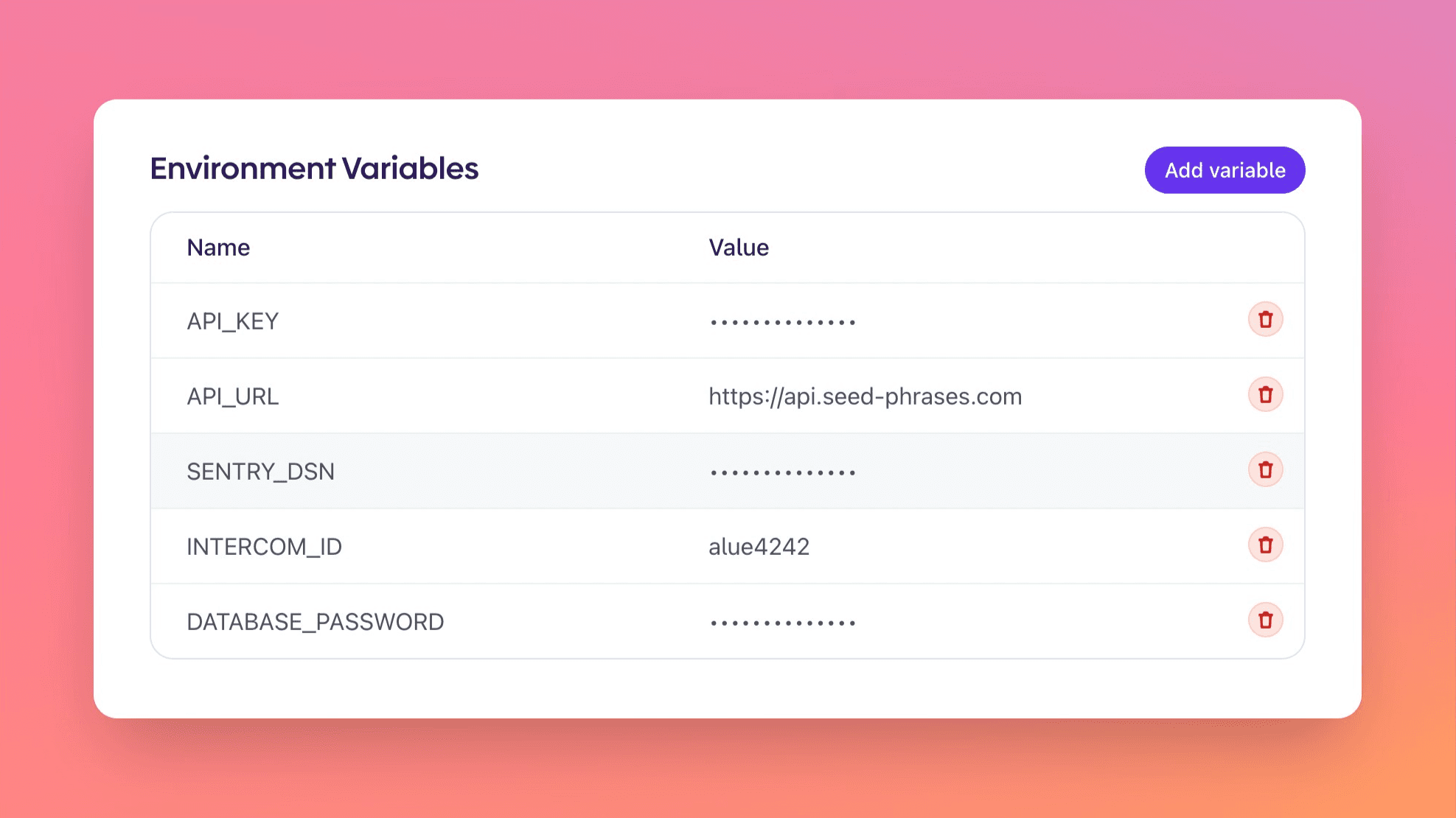 We just released new functionality that allows you to securely store secret environment variables. You can now choose to make your environment variables secret at creation.